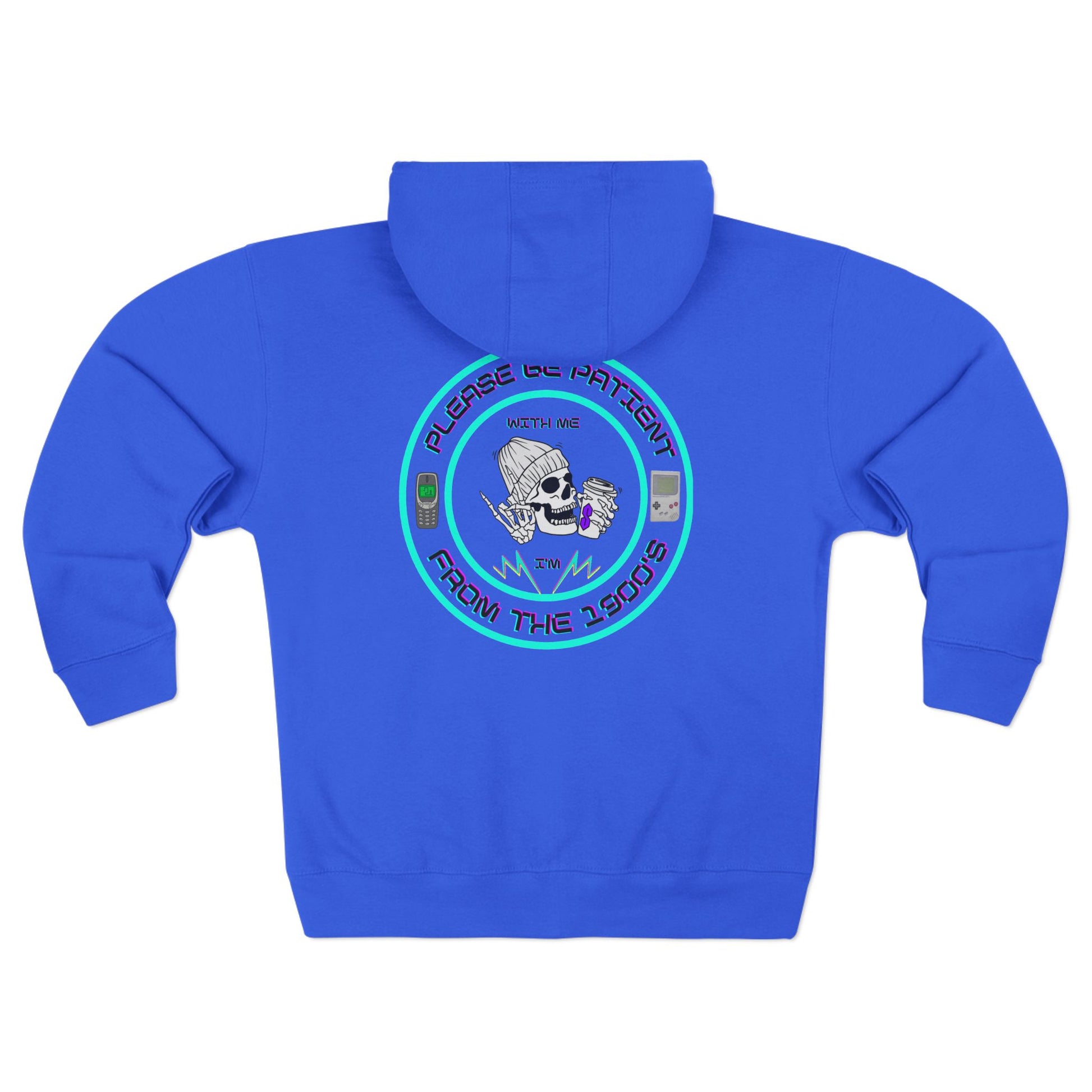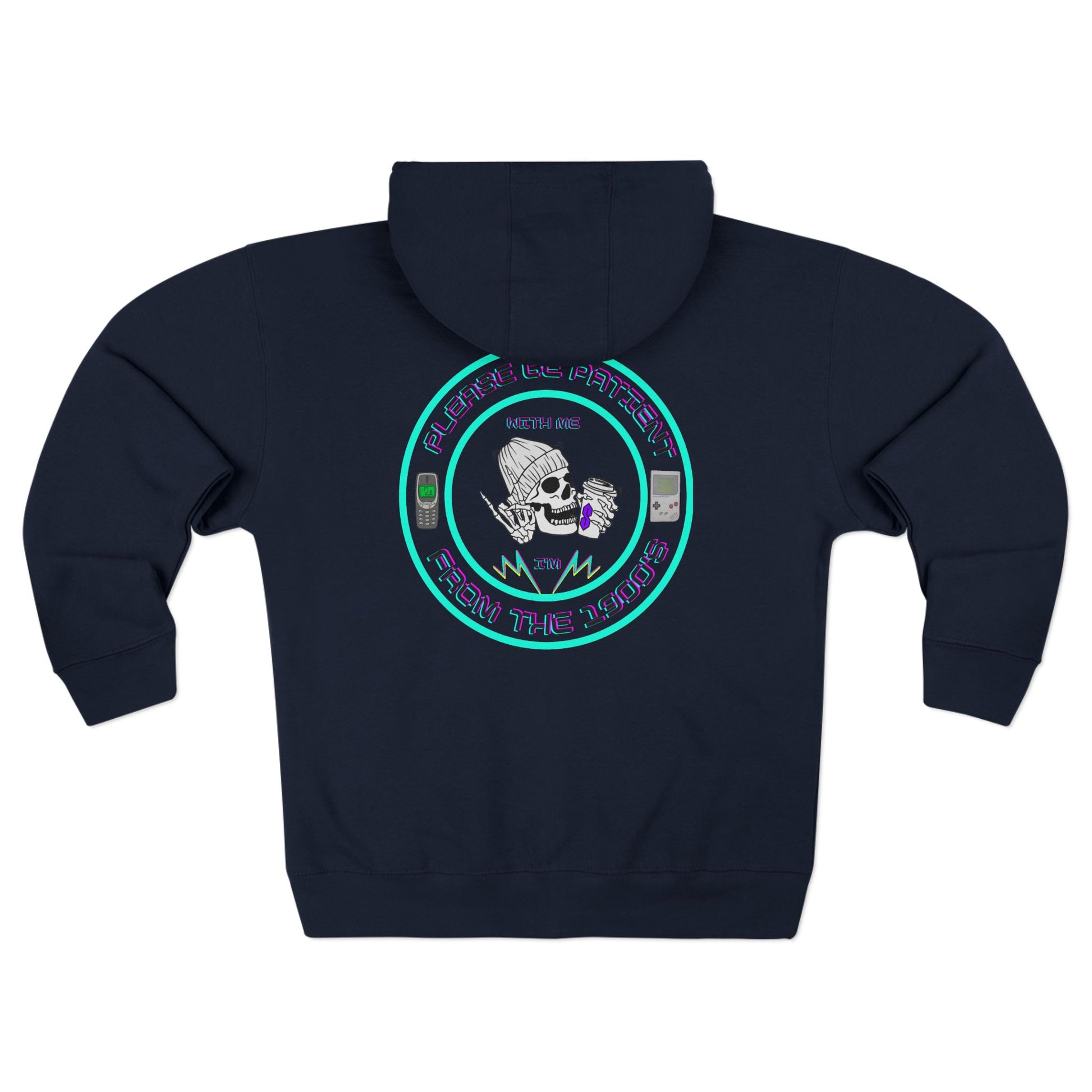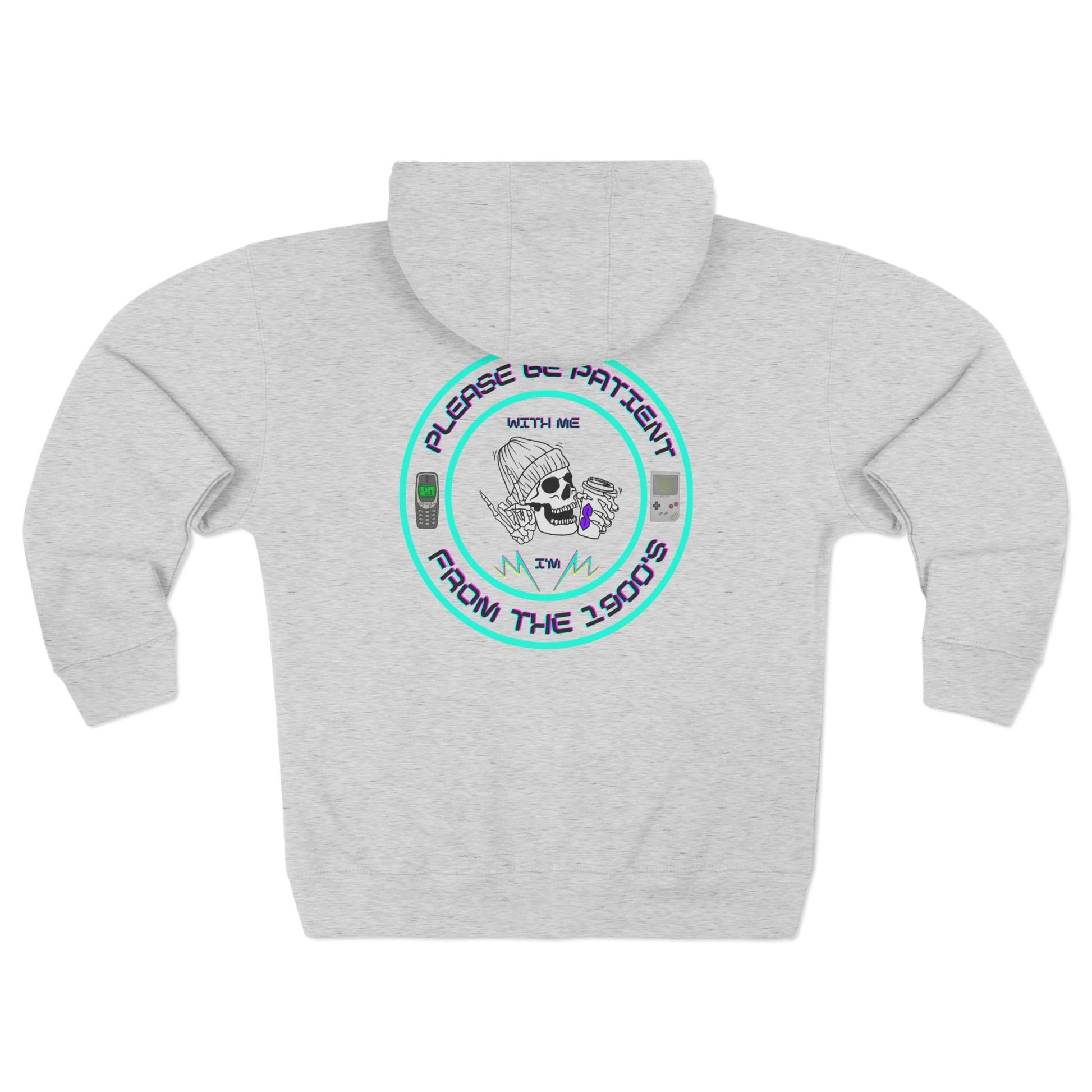 Comfy zip-up hoodie with a witty 1900’s throwback design—perfect for 90’s kids who love a good laugh.